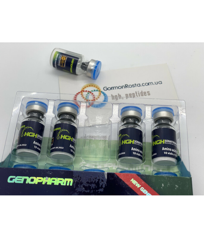 Гормон роста GenoPharm HGH Somatropin Amino Acid 191Препарат HGH Somatropin 191 от корпорации из Израиля GenoPharm является истинным шедевром современной фармакологии. Это гормон роста пептидного типа, являющийся 100% аналогом соматропина, какой выделяется человеческим организмом. Главное преимущество продукта – универсальность.Израильская компания решила приятно удивить спортсменов, выпустив Генофарм гормон роста – купить такой универсальный продукт можно и для набора массы, и для сушки. Всего один курс поможет ускорить естественный рост мускулатуры, немного «подсушиться» перед грядущими соревнованиями или привести в порядок организм. Обещанные производителем эффекты проявляются спустя максимально короткий промежуток времени.Препарат от Генофарм имеет в своей структуре 191 аминокислоту, на 100% представляет собой аналог человеческого гормона роста. Уже сегодня можно купить гормон роста Somatropin в Киеве.Чем опасен недостаток Соматропина в организме?Существует мнение, что на самом высоком уровне гормон роста находится у детей в переходном возрасте. После его завершения количество выделяемого соматропина становится все меньше, в итоге наступает дефицит гормона роста. У детей это может привести к низкорослости, у взрослых – к недостатку энергии, силы, неудовлетворительной массе костей. Существует просто решение от Генофарм: гормон роста, купить который можно не только для силовых тренировок, но и для антивозрастной терапии. Своевременный прием даже небольшой дозы высококачественного препарата способен не допустить возникновения серьезных осложнений, вызванных снижением синтеза пептидов.Закажите препарат в нашем интернет-магазине, цена Somatropin GenoPharm вас приятно удивит. Она полностью соответствует эффективности препарата, что подтверждают соответствующие лабораторные проверки.По нашей просьбе был сделан хроматографический анализ гормона роста Genopharm в независимой лаборатории Silver Pharm, посмотреть его результаты вы можете в данной статье.Безусловно, гормон роста Somatropin имеет множество положительных свойств. Среди них:Стремительный рост мышц;Их надежная защита от возможного разрушения;Избавление от жировой прослойки;Приток энергии;Улучшение состояния кожи;Ускорение процесса заживления ран;Эффект омоложения;Укрепление иммунитета.Способы применения и дозировка Somatropin от GenopharmЕсли вам внушает доверие репутация бренда Генофарм, гормон роста купить можно на нашем сайте. Но прежде стоит ознакомиться с рекомендациями по дозировке и способу применения. По мнению специалистов, суточная доза этого препарата должна быть от 2 до 8 МЕ. Способ применения гормона роста – внутримышечные или подкожные инъекции раствора на основе порошка и бактерицидной воды. Их необходимо делать специальным инсулиновым шприцем. Эксперты также советуют чередовать места уколов.Уже сейчас вы можете купить Somatropin в нашем магазине Gormon Rosta! Мы торгуем только оригинальными препаратами по максимально низким в Украине ценам. Доставка продукции возможна по всей стране и за ее пределы.Также советуем прочесть следующие статьи :Как использовать гормон роста, пояснение "на пальцах"Инсулин - раскладываем по полочкам.Гормон роста для лечения суставов, связок и межпозвоночных грыж.Применение гормона роста в косметологии и медицине.Гормон роста, инсулин, Т4 и Т3